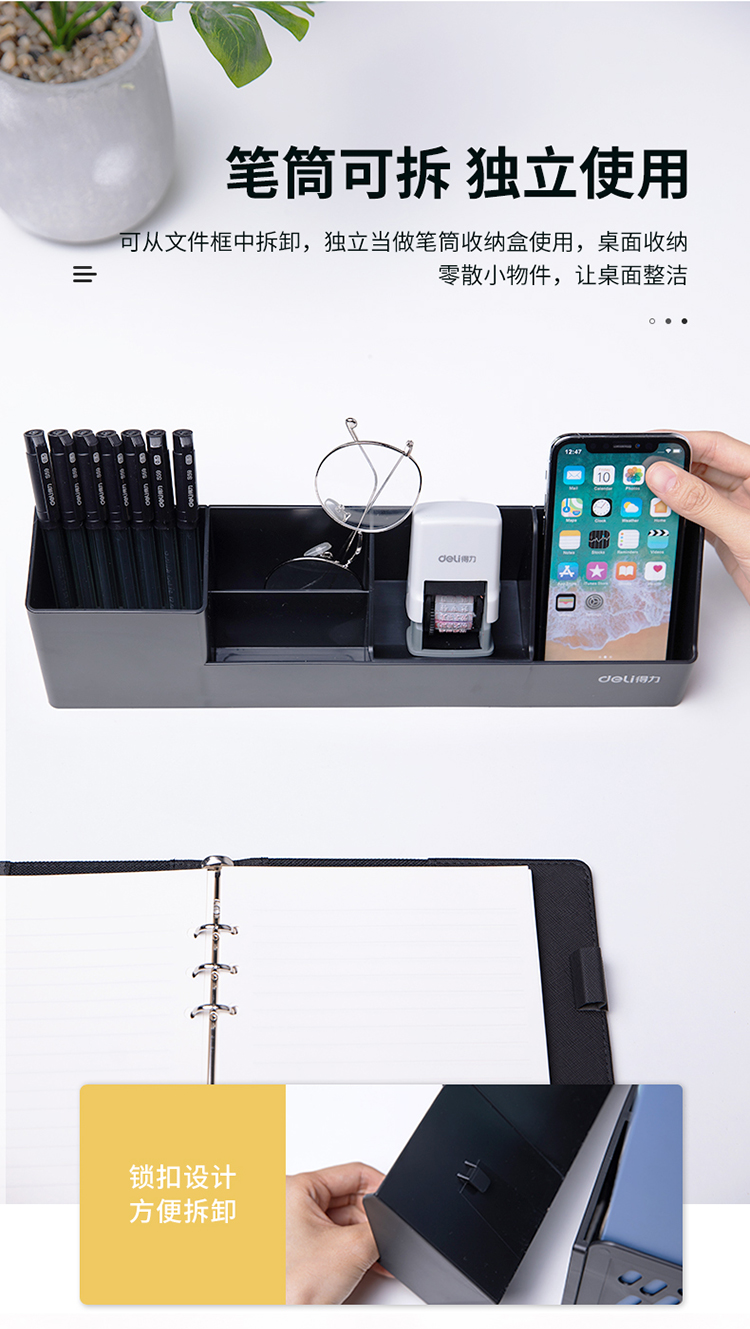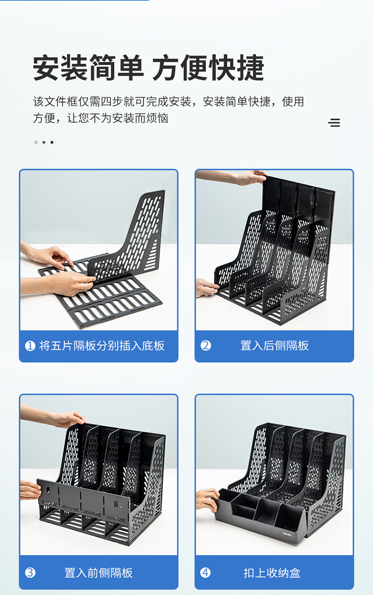 得力資料筐 78981 四聯(lián)帶筆筒文件框多功能資料筐 黑色 單位:個