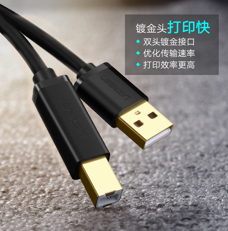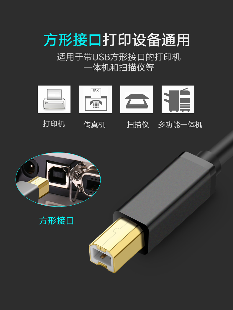 綠聯(lián) US135 USB2.0高速打印機(jī)數(shù)據(jù)線方口連接線鍍金接頭A公對(duì)B公 3米 黑色 單位:根