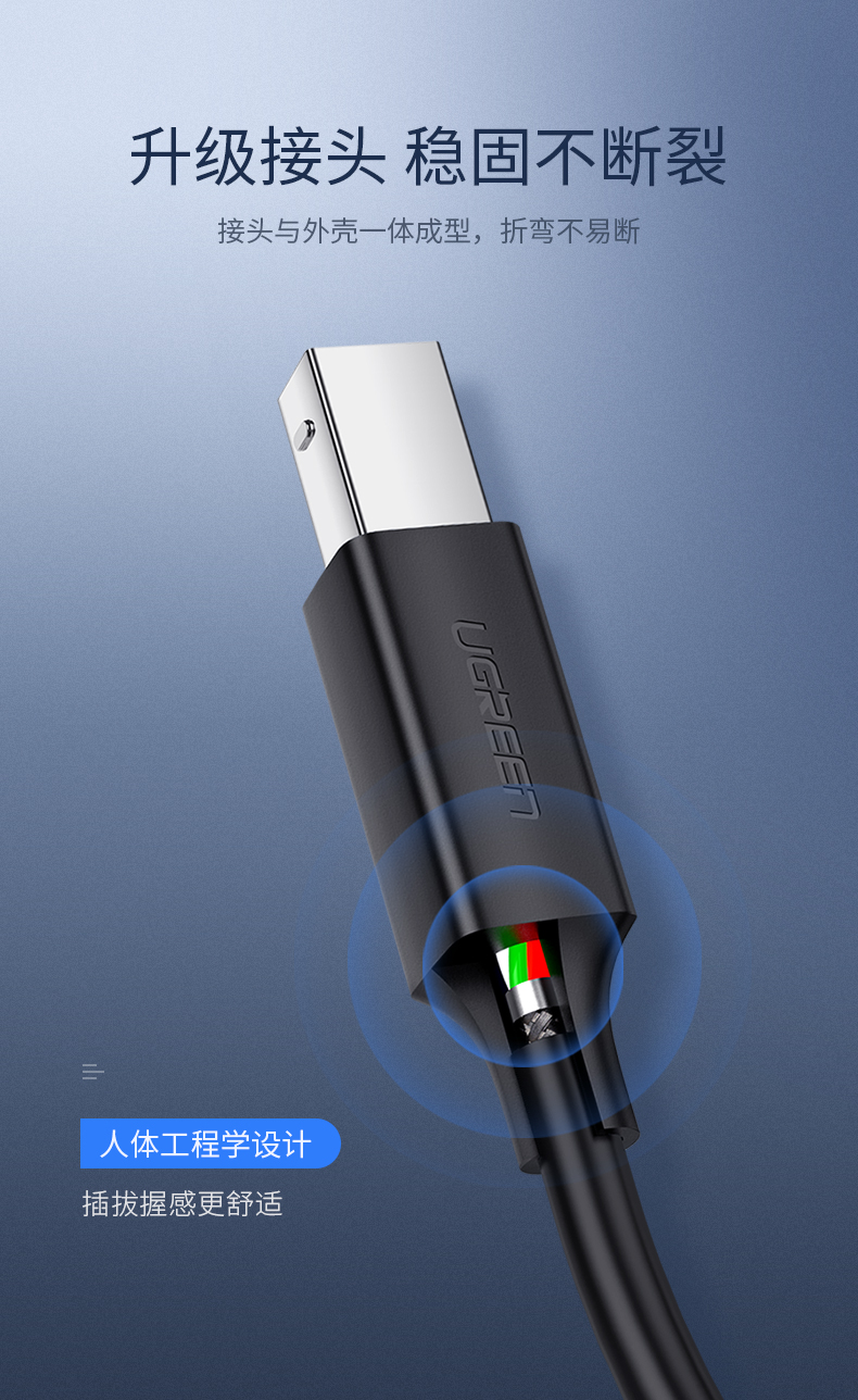 綠聯(lián) US104 USB2.0高速打印機(jī)線方口數(shù)據(jù)連接線 A公對(duì)B公 2米 黑色 單位:根