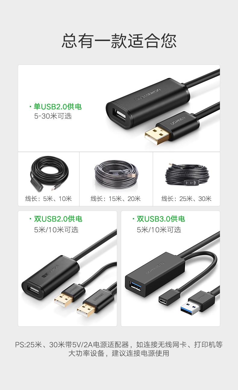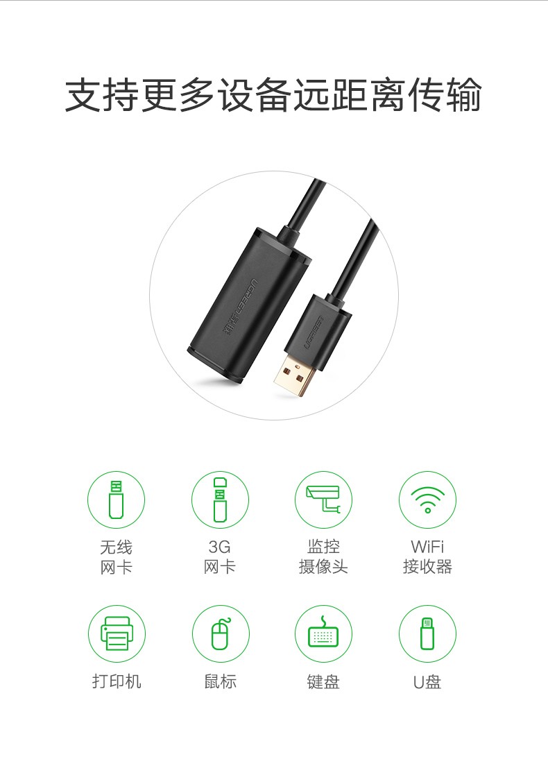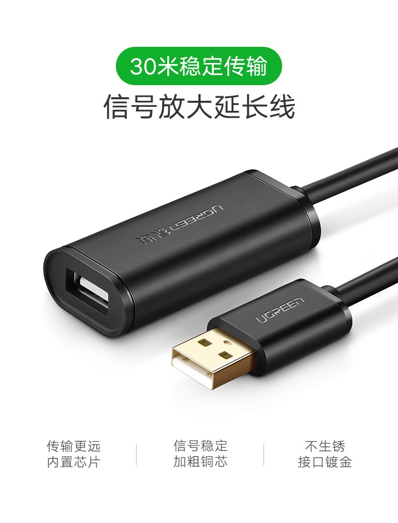 綠聯(lián) US121 USB2.0延長(zhǎng)線公對(duì)母數(shù)據(jù)線 30米 黑色 單位:根