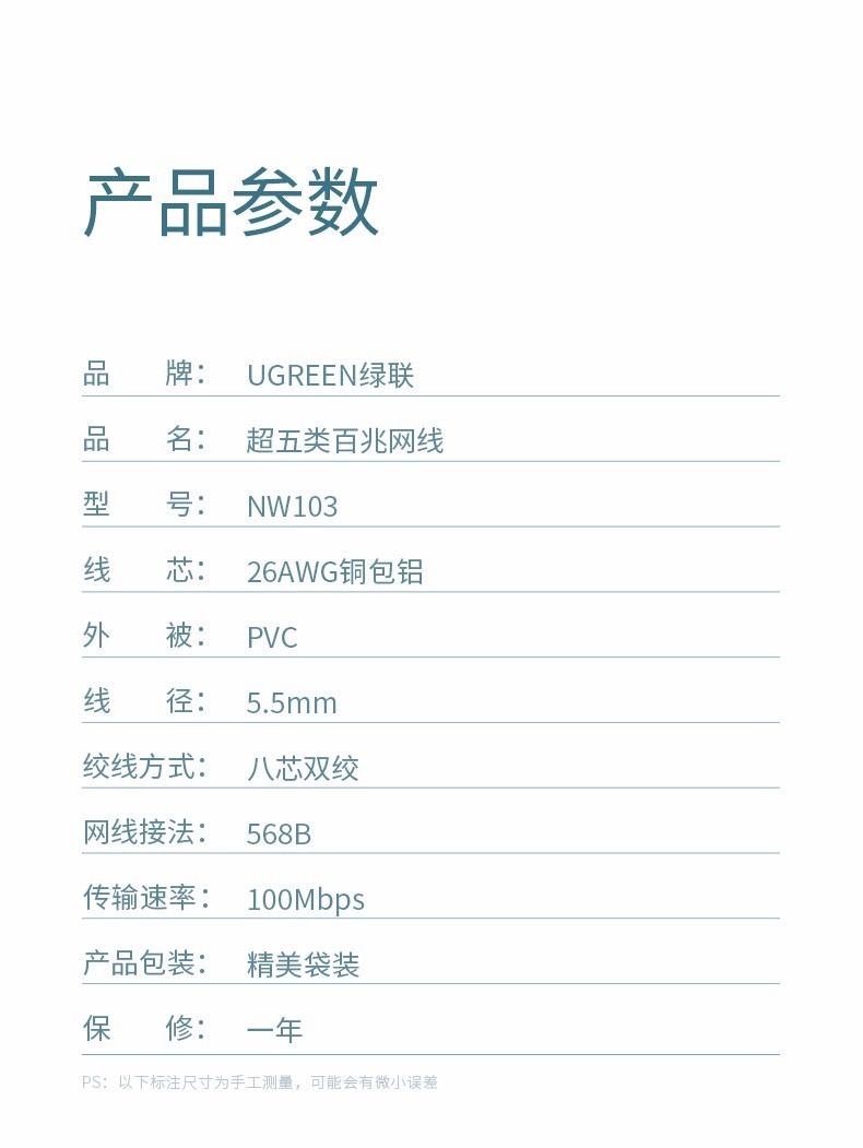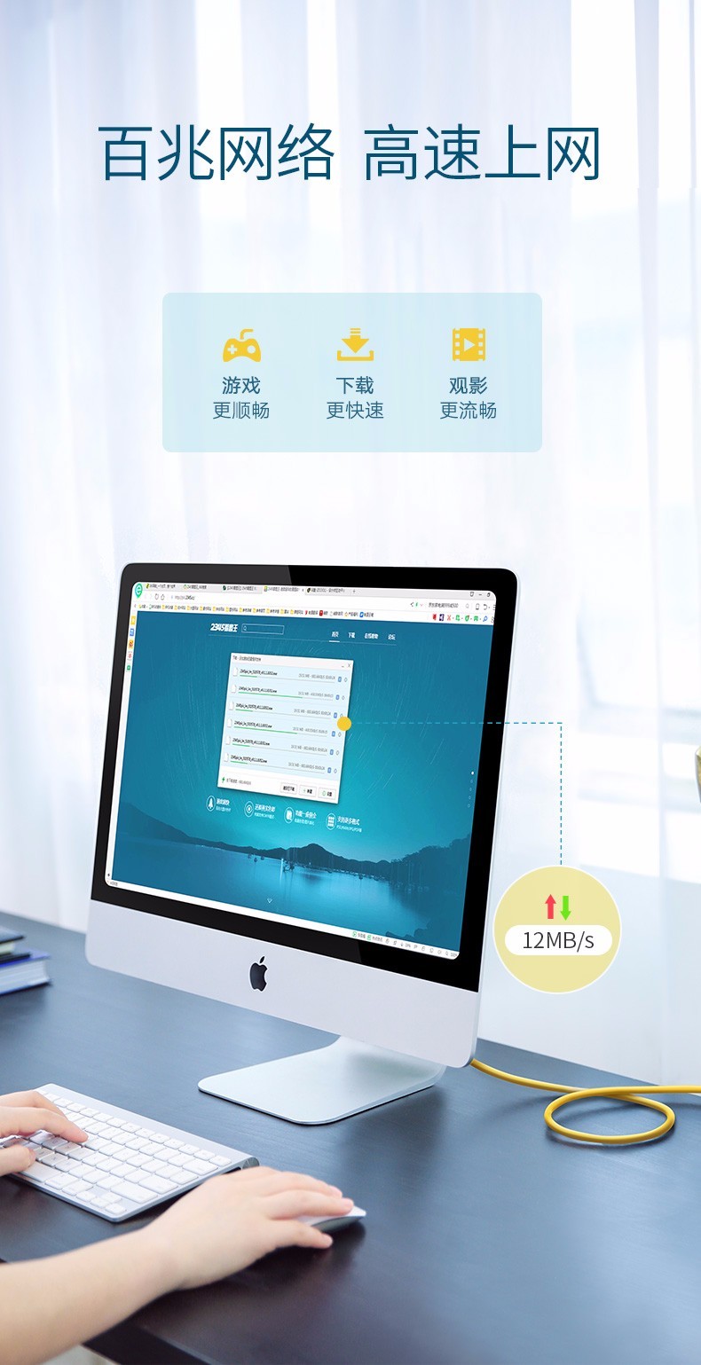 綠聯(lián)網(wǎng)線 NW103 超五類網(wǎng)線RJ45百兆八芯雙絞非屏蔽網(wǎng)絡(luò)跳線 1米 黃色 單位:根