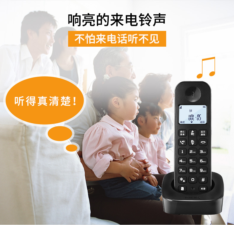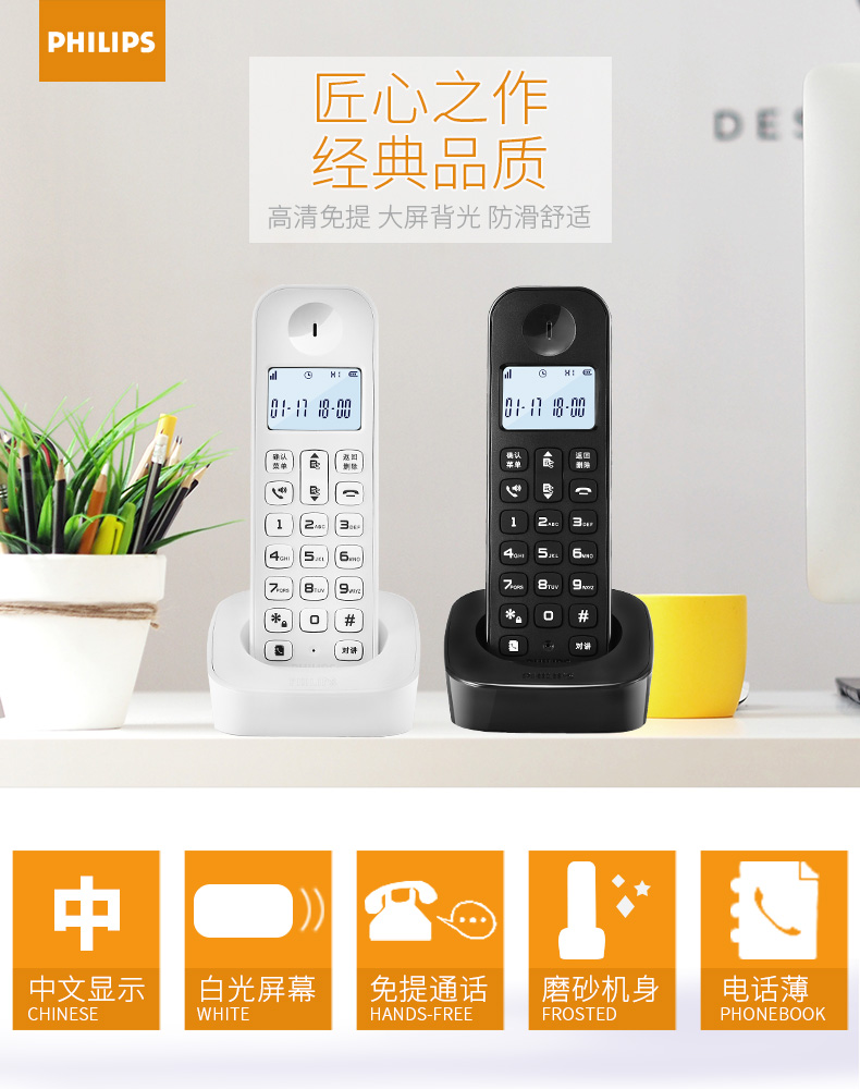 飛利浦電話 DCTG160 數(shù)字無繩電話機無線固話座機子母機 單機 紅色 單位:套