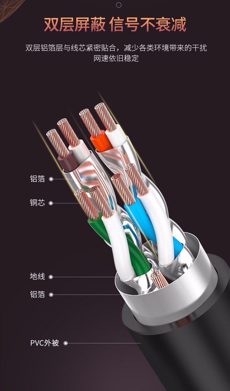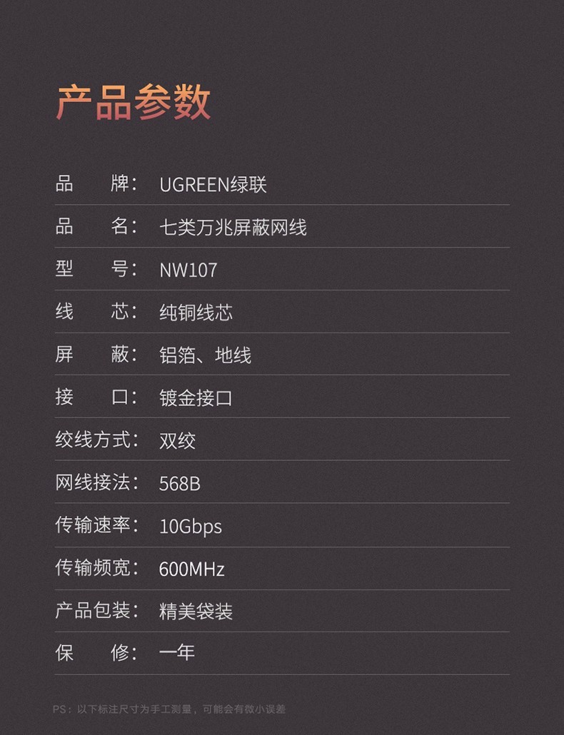 綠聯(lián)網(wǎng)線 NW107 工程級CAT7類八芯雙絞純銅鍍金雙屏蔽高速萬兆網(wǎng)絡跳線 2米 單位:根