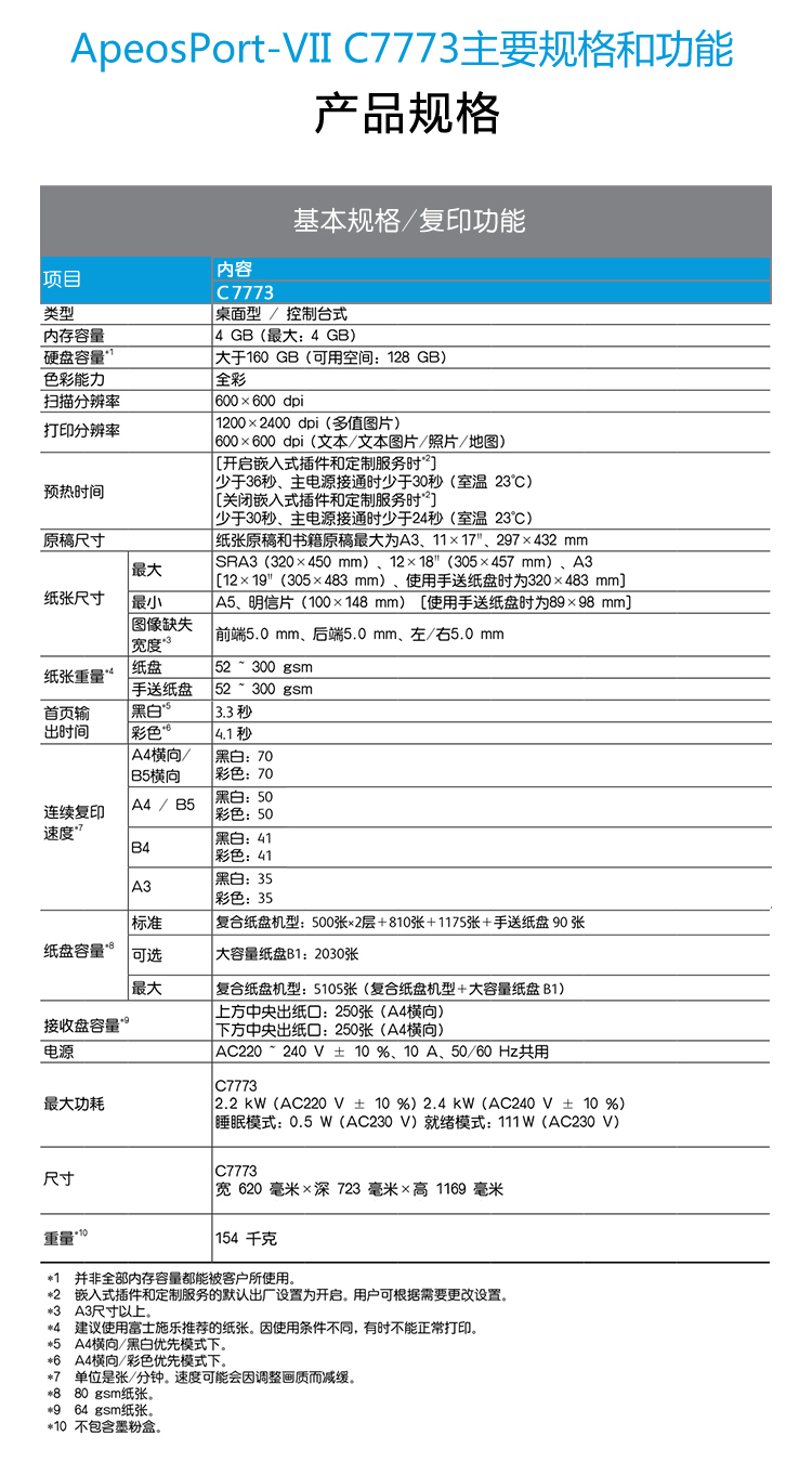 富士施樂復(fù)印機(jī) ApeosPort-VII C7773 CPS SC 彩色激光復(fù)印機(jī) 單位:臺