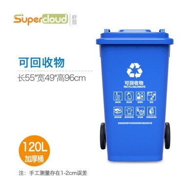 舒蔻 120L帶輪 藍(lán)色 可回收垃圾桶 物業(yè)環(huán)衛(wèi)垃圾分類商用帶蓋分類垃圾桶果皮箱 單個(gè)裝