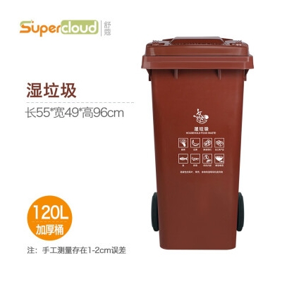舒蔻 120L帶輪 咖啡色 濕垃圾桶 物業(yè)環(huán)衛(wèi)垃圾分類商用帶蓋分類垃圾桶果皮箱 單個裝