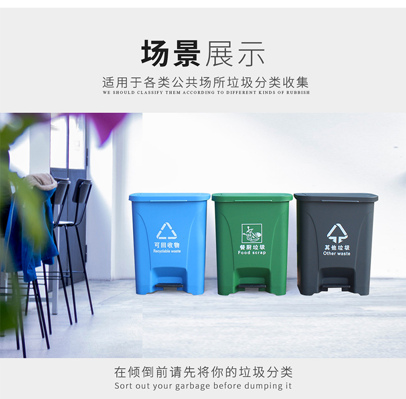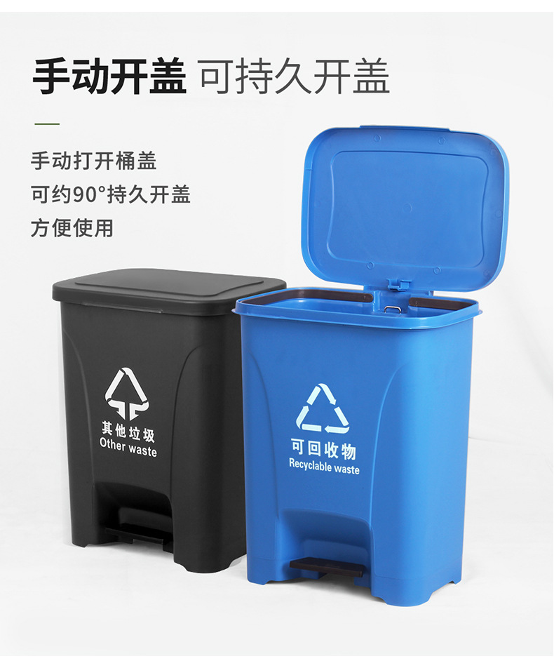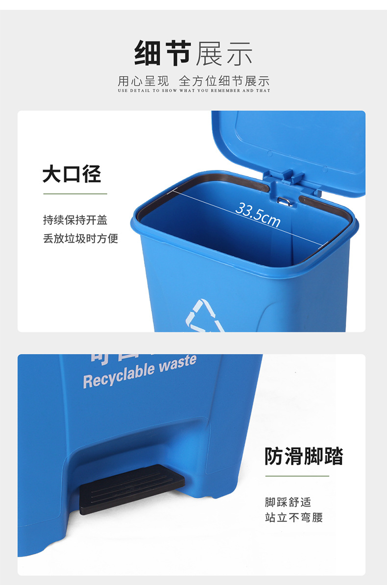 納麗雅 30L腳踩 藍色 可回收垃圾桶 物業(yè)環(huán)衛(wèi)垃圾分類商用帶蓋分類垃圾桶果皮箱 單個裝
