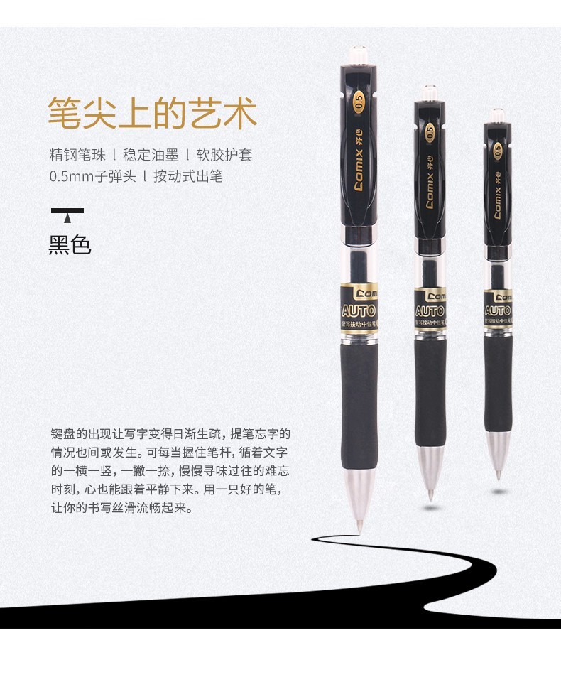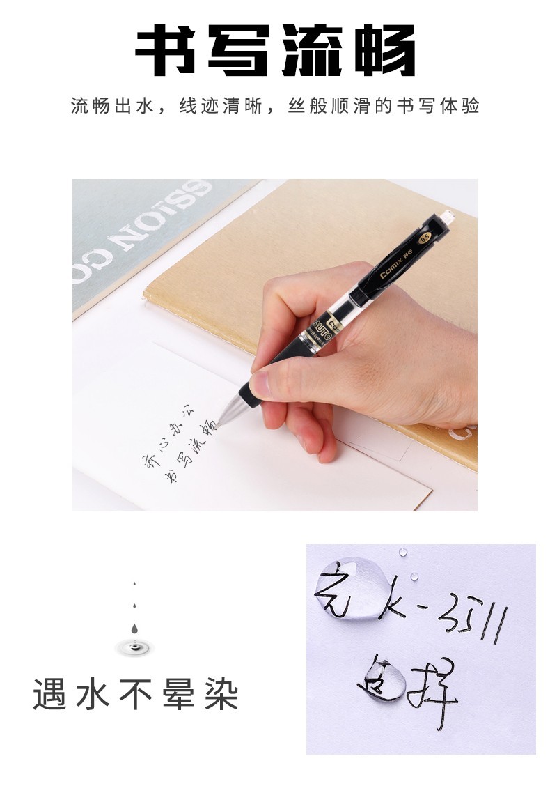 齊心 K3511 0.5mm 按動(dòng)中性筆簽字筆 藍(lán)黑色 12支/盒