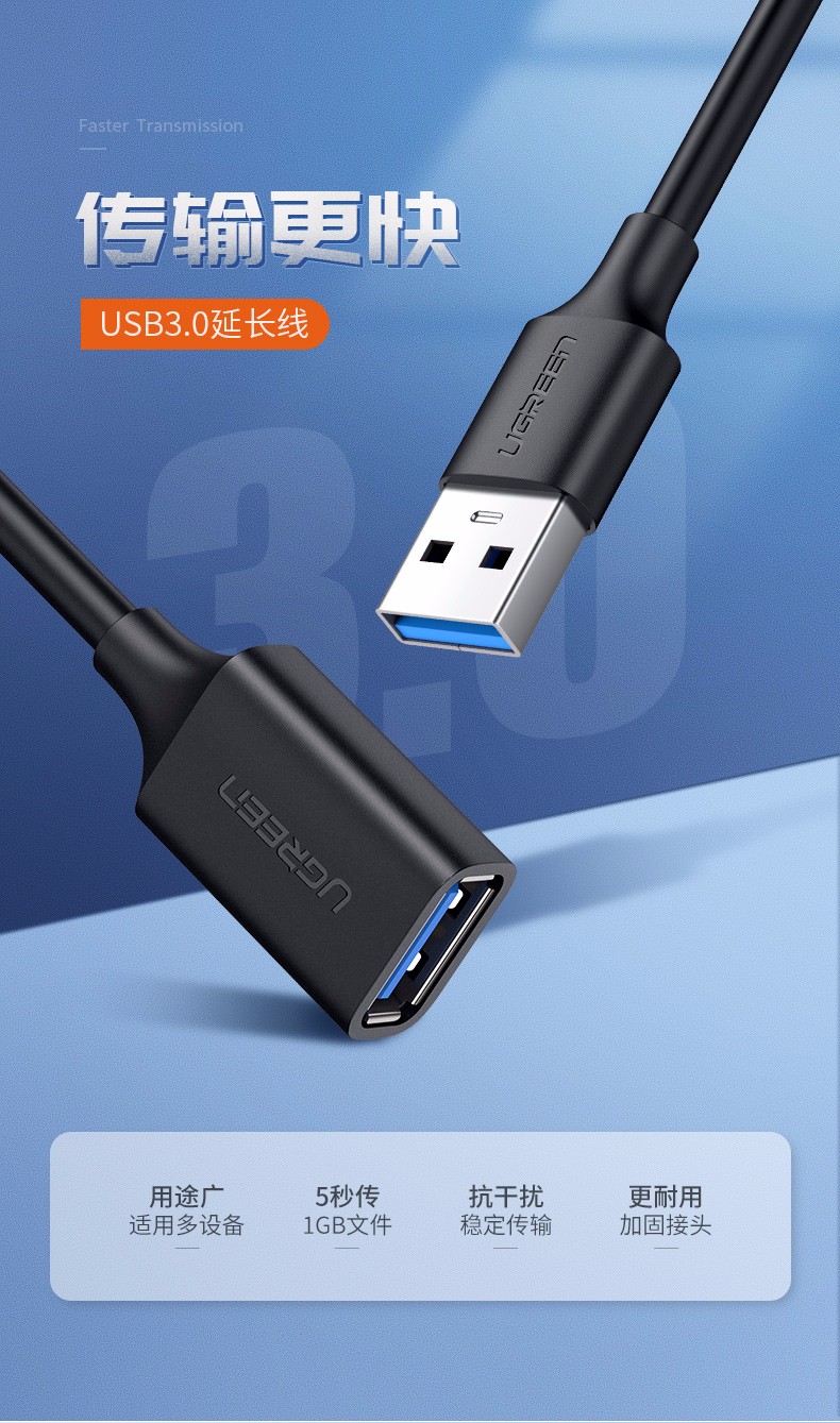 綠聯(lián) US129 USB3.0延長(zhǎng)線(xiàn)公對(duì)母高速傳輸數(shù)據(jù)線(xiàn) 1.5米 經(jīng)典款 黑色 單位:根