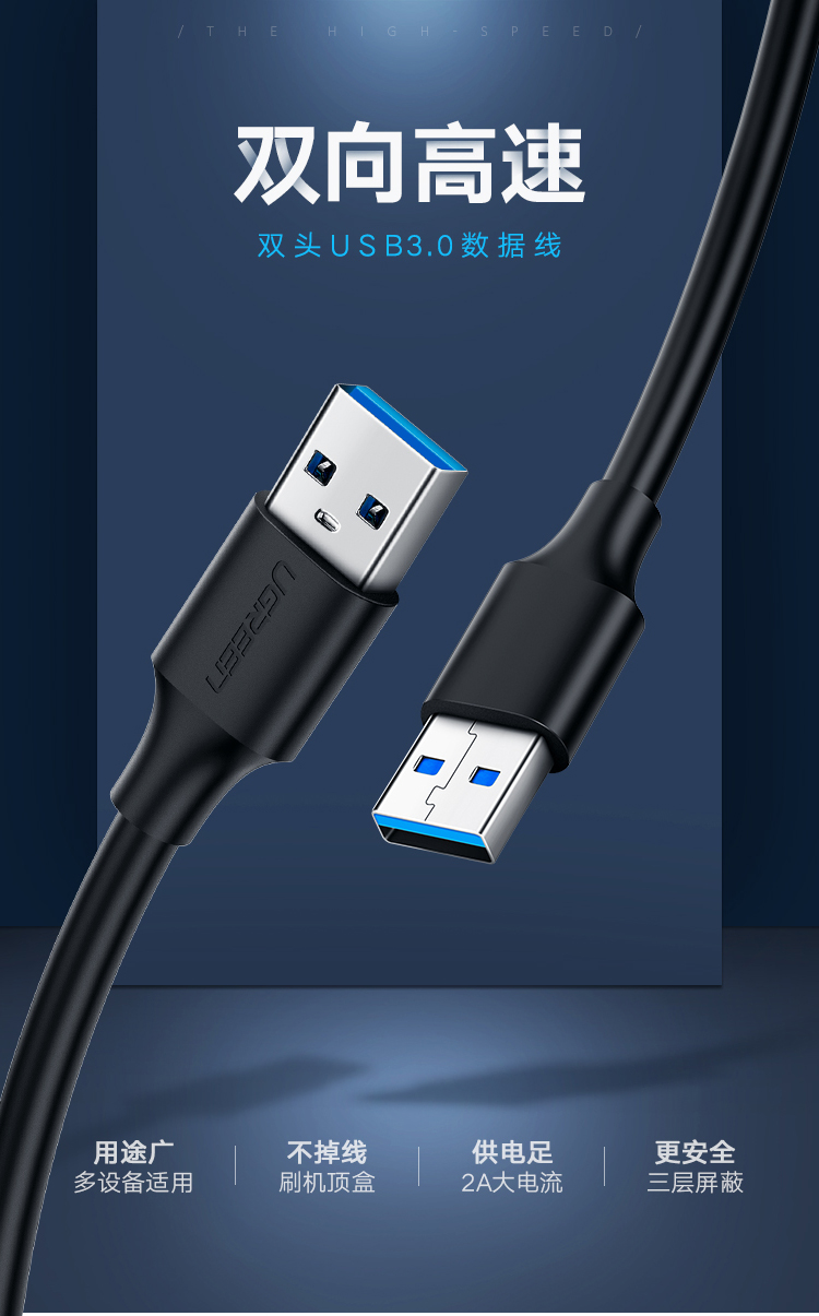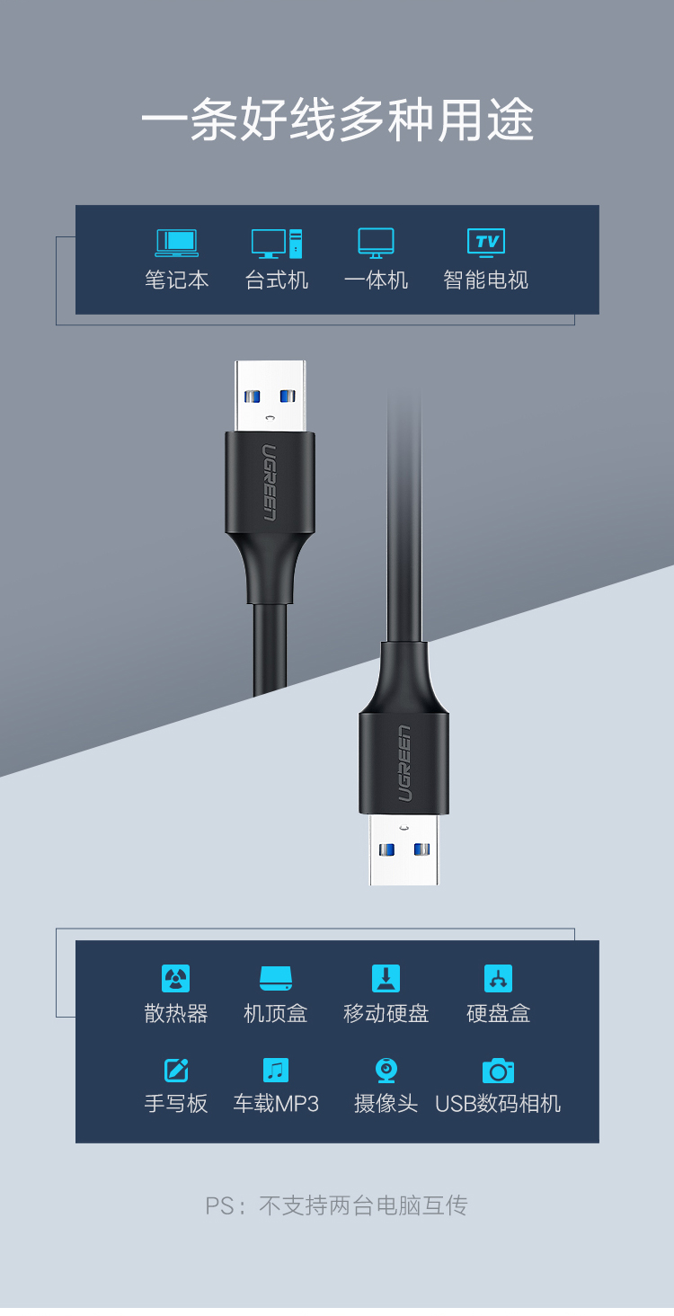 綠聯(lián) US128 USB3.0數(shù)據(jù)線公對(duì)公 2米 黑色 單位:根
