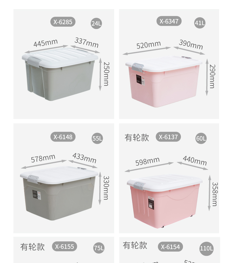 禧天龍收納箱X-6154 大號塑料儲物箱整理箱 110L帶輪 單位:個
