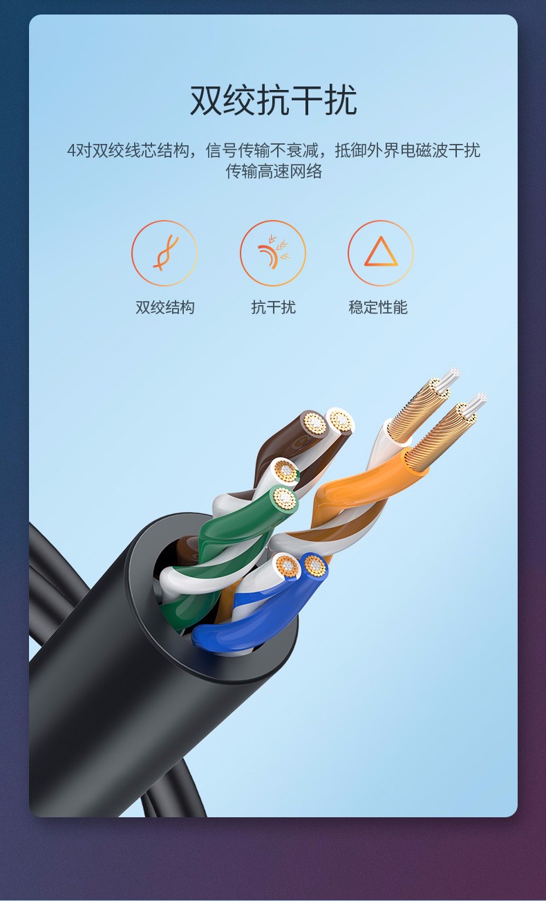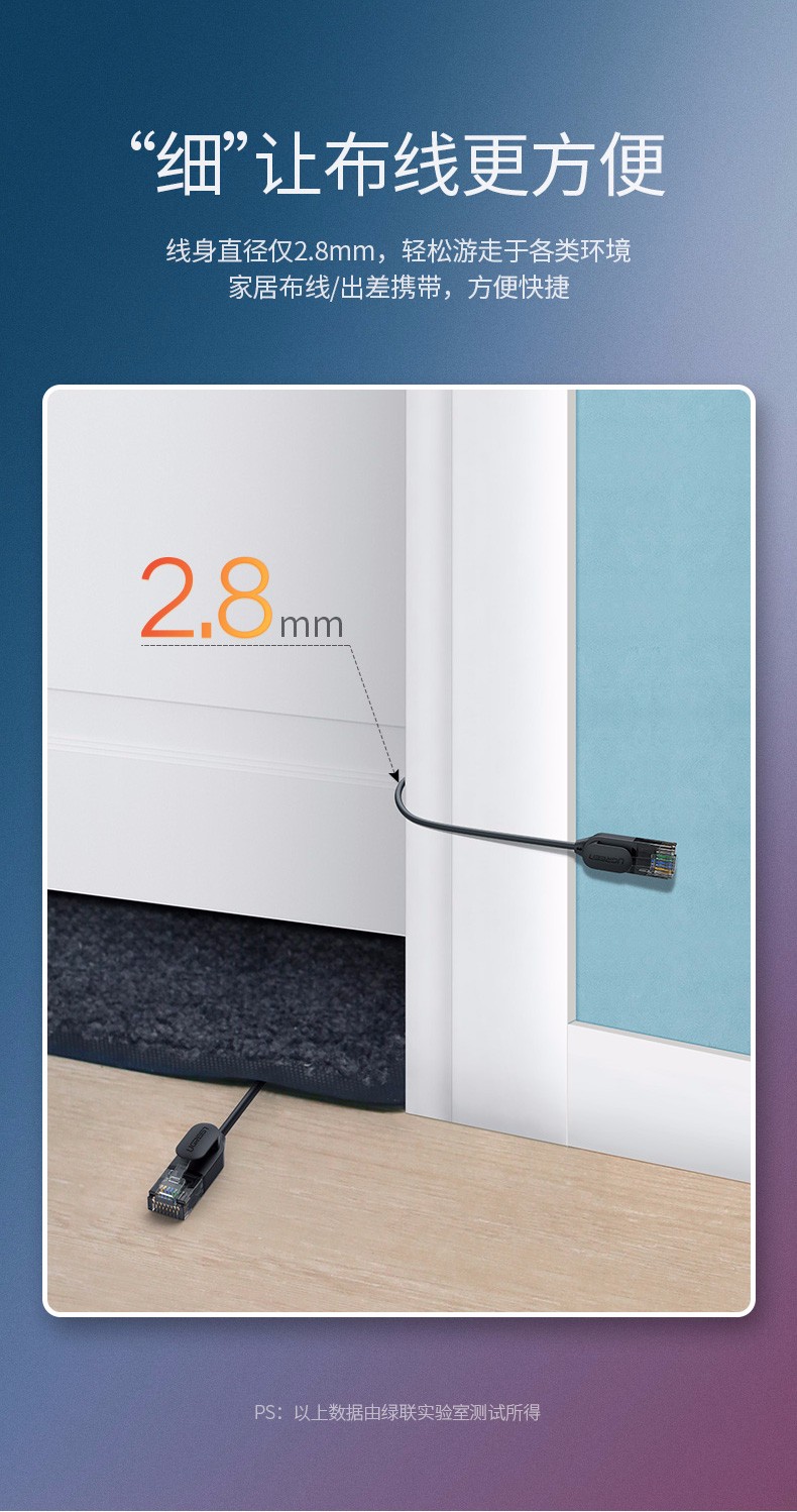 綠聯(lián) NW122 超六類萬(wàn)兆網(wǎng)線細(xì)線 CAT6A類純銅鍍金八芯雙絞非屏蔽網(wǎng)絡(luò)跳線 家用電腦寬帶高速成品網(wǎng)絡(luò)連接線 1.5米 黑色 單個(gè)裝