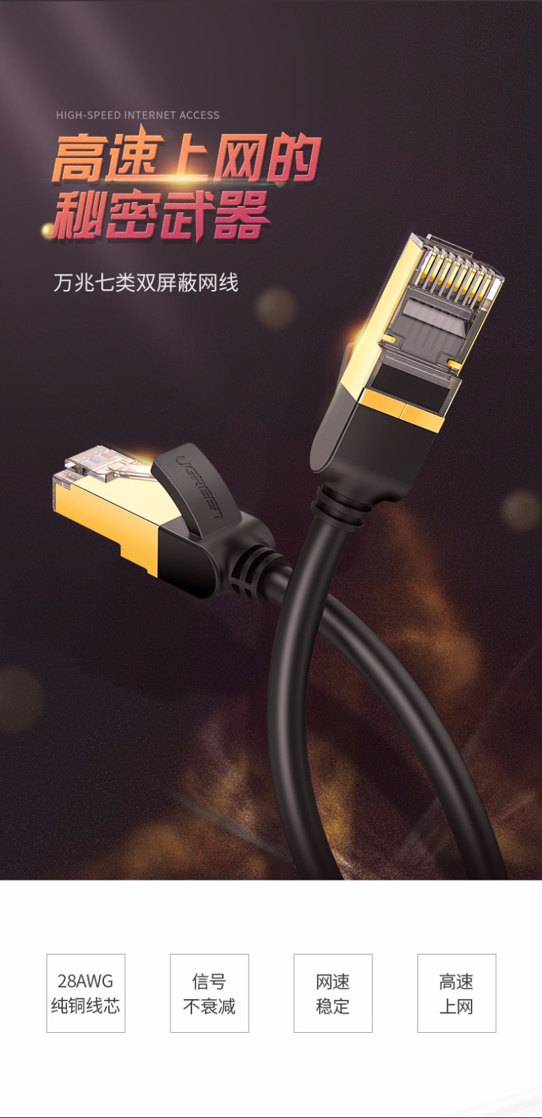 綠聯(lián) NW107 七類網(wǎng)線 工程級(jí)CAT7類八芯雙絞純銅鍍金雙屏蔽高速萬(wàn)兆網(wǎng)絡(luò)跳線 電腦家用寬帶成品監(jiān)控連接線 七類圓形全銅網(wǎng)線 3米 黑色 單個(gè)裝