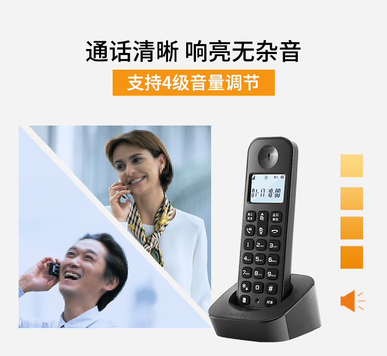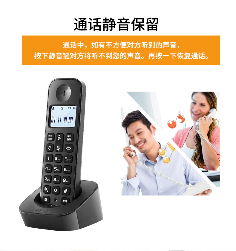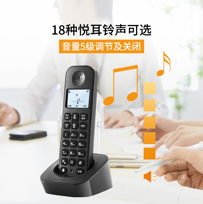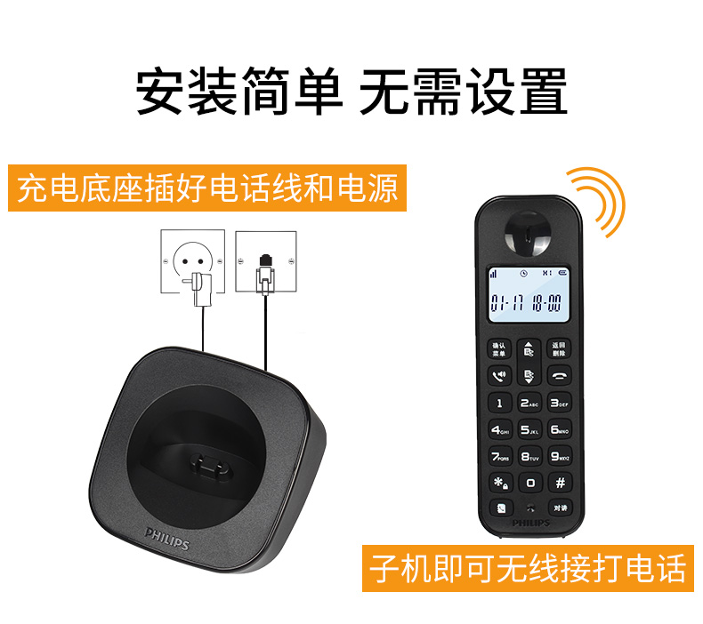 飛利浦 DCTG160 數(shù)字無(wú)繩電話機(jī) 家用辦公中文老人用大音量無(wú)線固話座機(jī)子母機(jī) 單機(jī) 黑色