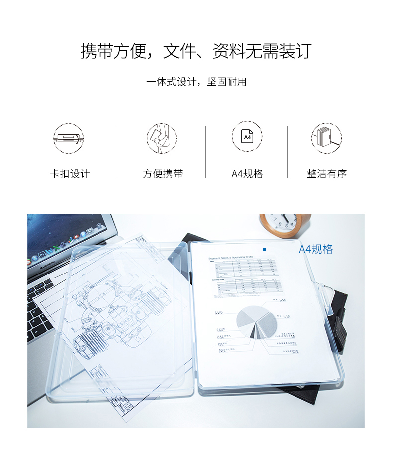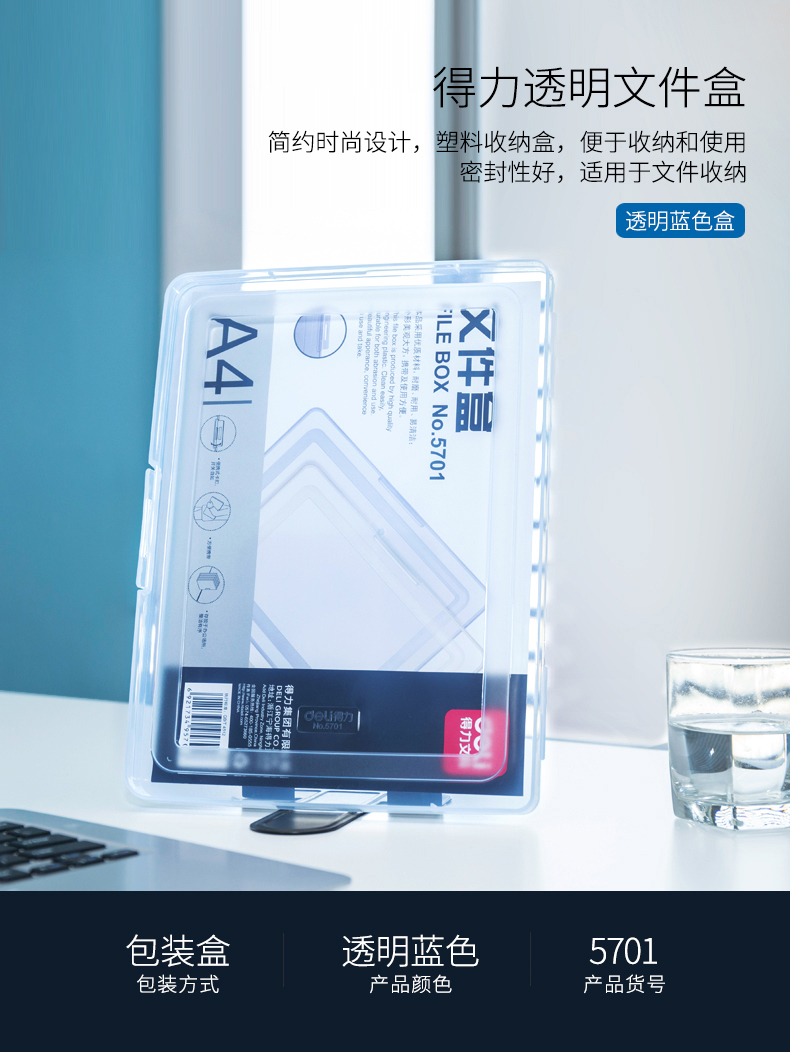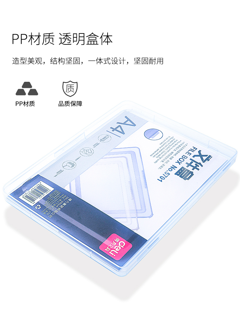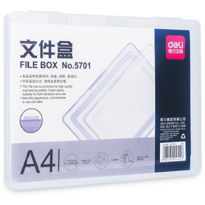 得力(deli) 5701 A4透明便攜卡扣文件盒 PP材質(zhì)環(huán)保耐用資料收納盒 20mm厚度 辦公用品