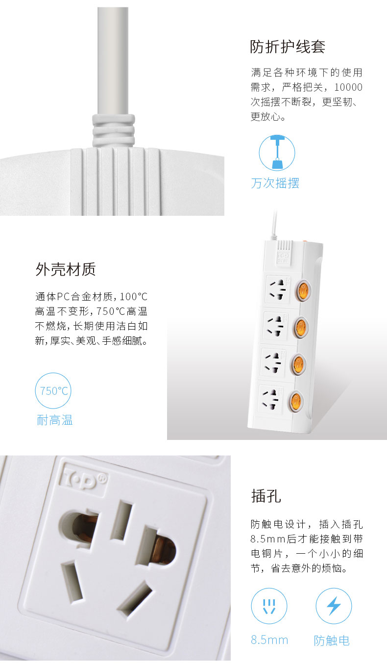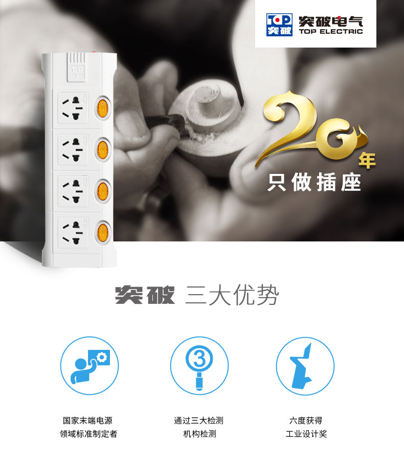 突破(TOP)TZ-T5K5 插座防過載插線板 接線板 5開5位 5米