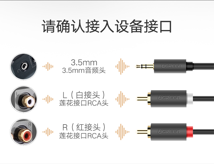 綠聯(lián) AV102 3.5mm公轉(zhuǎn)2RCA公音頻線1米 黑色 單位:根
