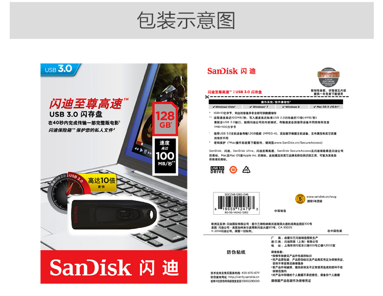 閃迪U盤 CZ48 USB3.0 32GB 單位:個