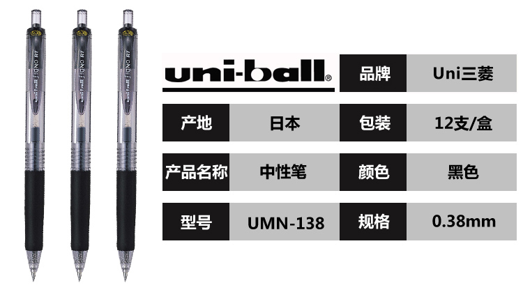 三菱 UMN-138 0.38mm 辦公按動簽字筆 單位:盒