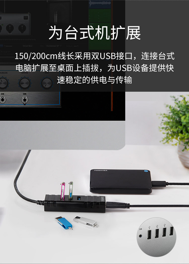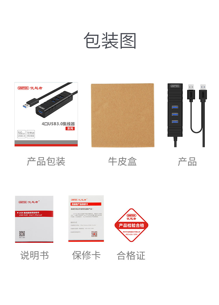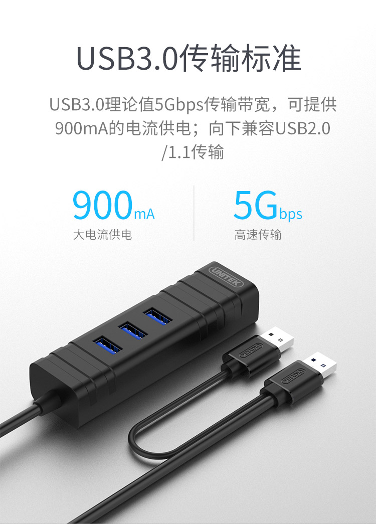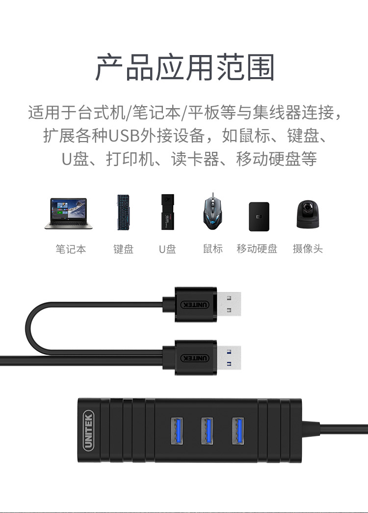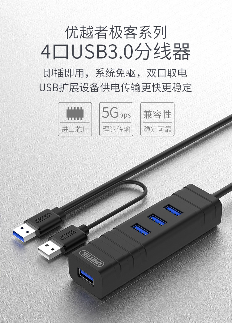 優(yōu)越者(UNITEK)分線器 高速擴展一拖四多接口 USB3.0 Y-3056DBK 2米 單位:個