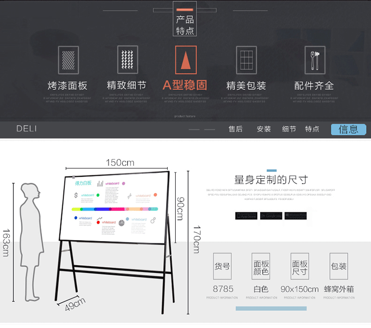 得力白板 8785 90*150cm 單位:塊