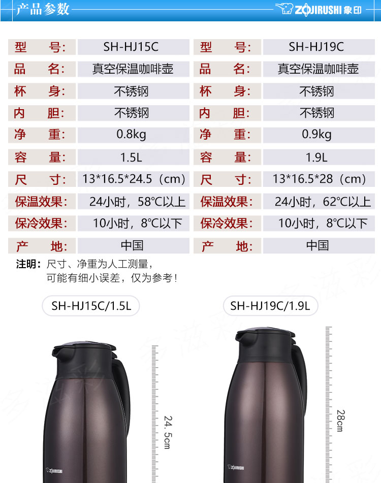 象印保溫壺 SH-HJ19C-XA 1.9L 單位:個