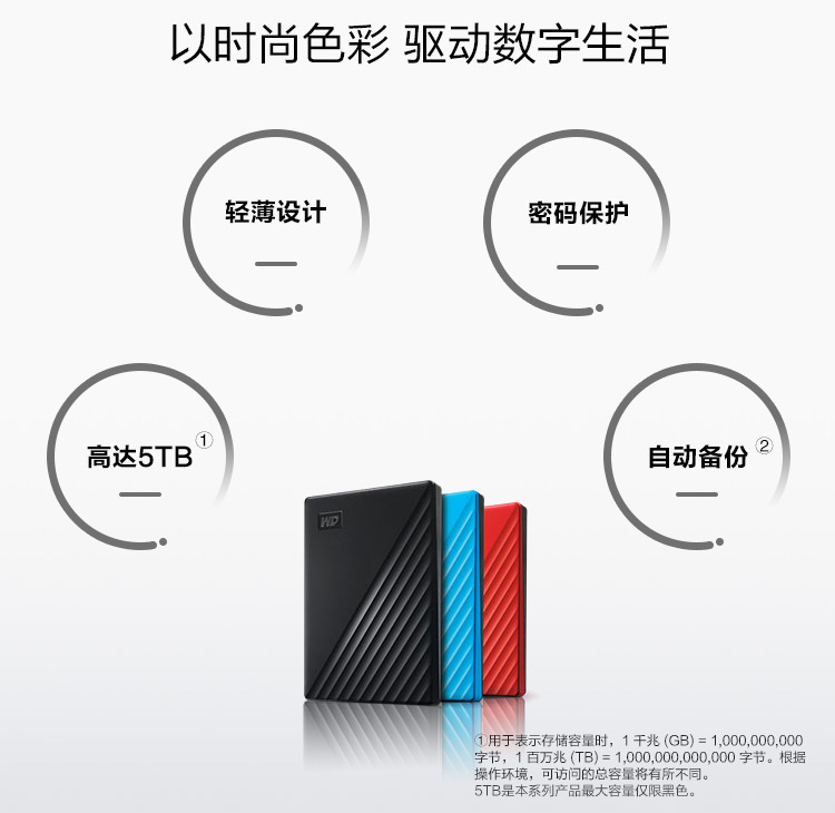 西部數(shù)據(jù)移動硬盤My Passport隨行版 2T 藍色 單位:個