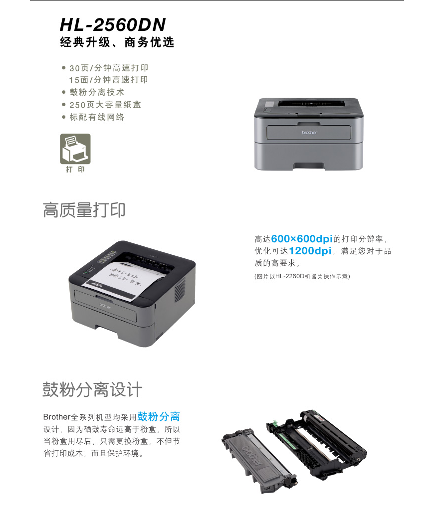兄弟打印機 HL-2560DN 黑白激光打印機 單位:臺