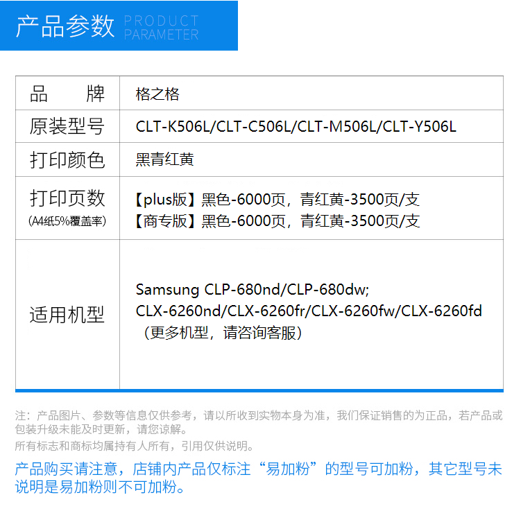 格之格硒鼓 CLT-K506L 青色商專版 單位:支