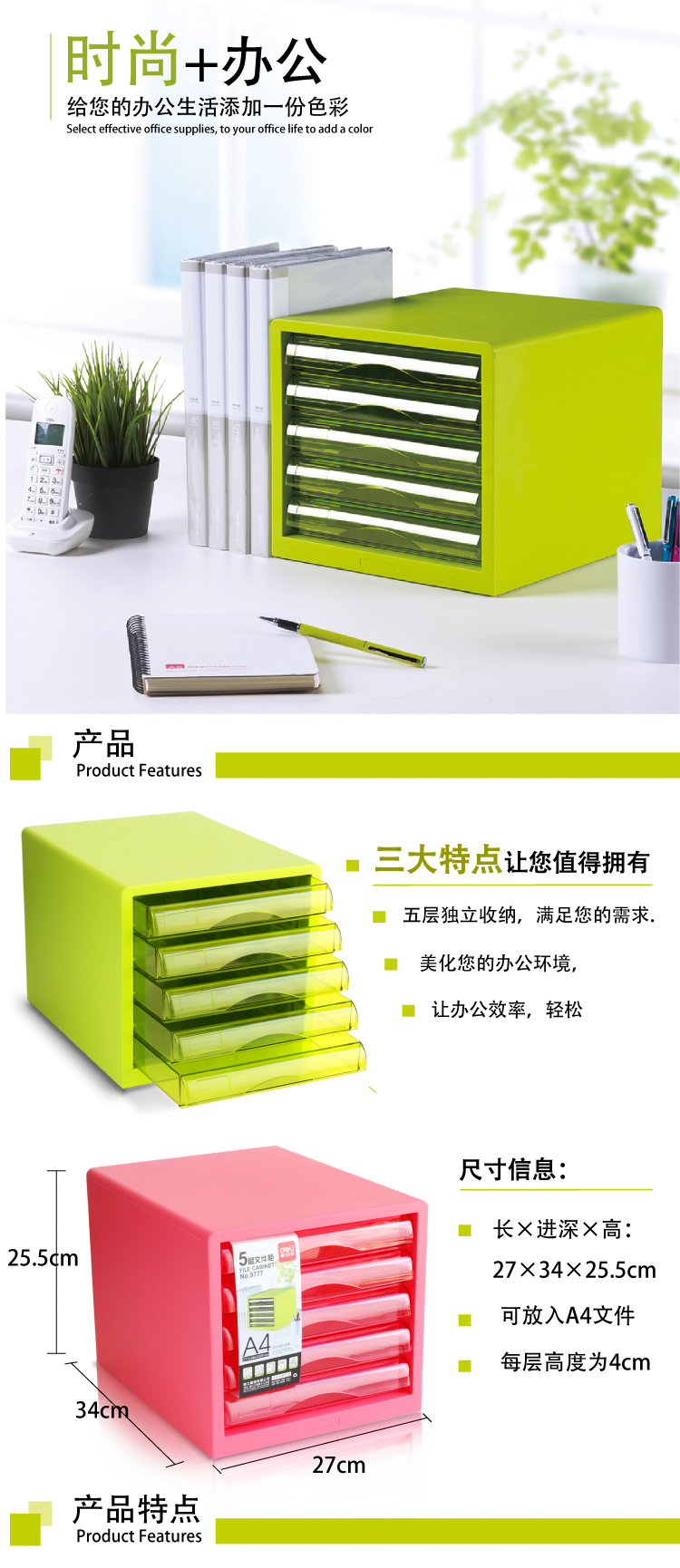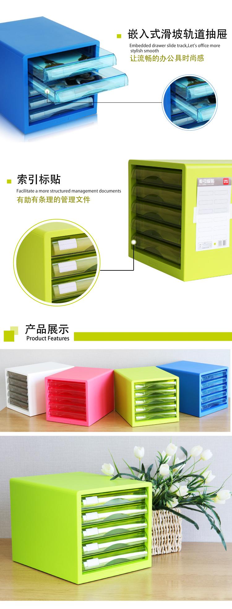 得力文件柜 9777 時尚靚彩系列5層塑料文件柜 白色 單位:個