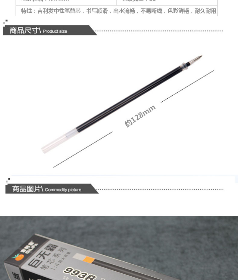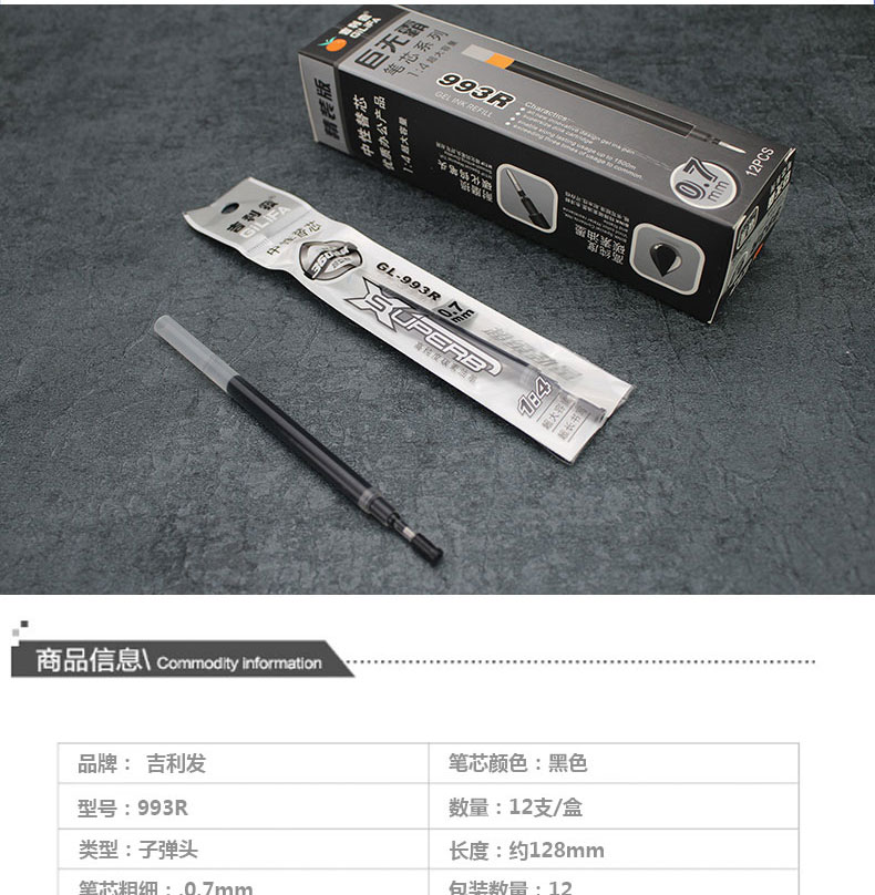 吉利發(fā) GL-993R 0.7mm 子彈頭替換筆芯 黑色 20支/盒
