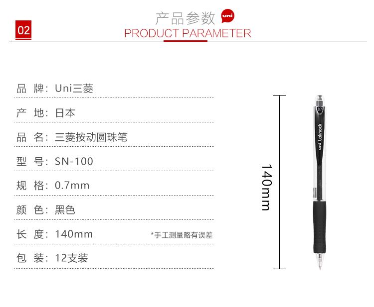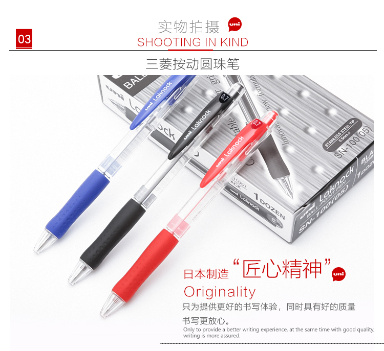 三菱 SN-100 0.7mm圓珠筆 按動(dòng)圓珠筆辦公用原子筆 黑色 12支/盒