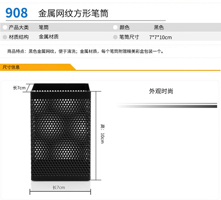 得力筆筒 908 金屬網(wǎng)紋方形筆筒 單位:個