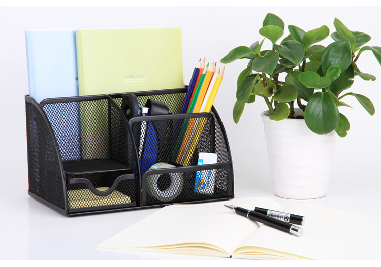 得力筆筒 9200 大氣金屬網(wǎng)紋多功能筆筒 黑色 單位:個(gè)