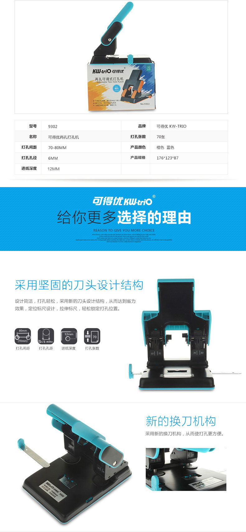 可得優(yōu)(KW-triO)打孔機(jī)打孔器9302兩孔機(jī) 顏色隨機(jī) 9302