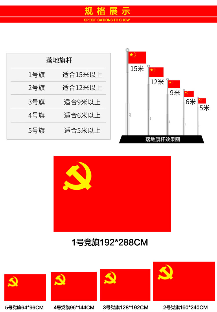 滌綸納米黨旗 防水黨旗 1號(hào)黨旗 192*288cm 單位:面