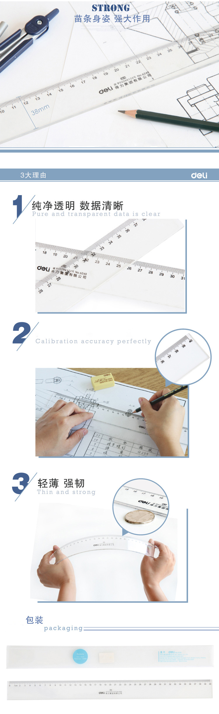 得力尺子 6260 60cm塑料直尺 單位:把