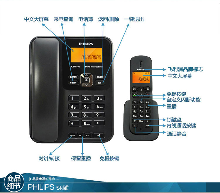 飛利浦電話 DCTG192 一拖一 無繩子母機 單位:套