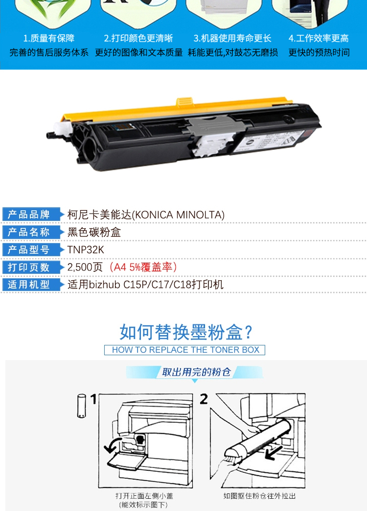 柯尼卡美能達 TNP32 黑色碳粉 適用bizhub C15P/C17/C18打印機 單位:支
