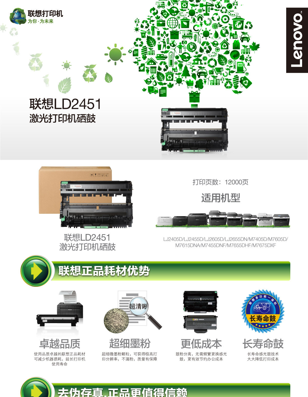 聯(lián)想 LD2451 黑色硒鼓 適用LJ2605D/2655DN/M7605D/M7400PRO LD2451