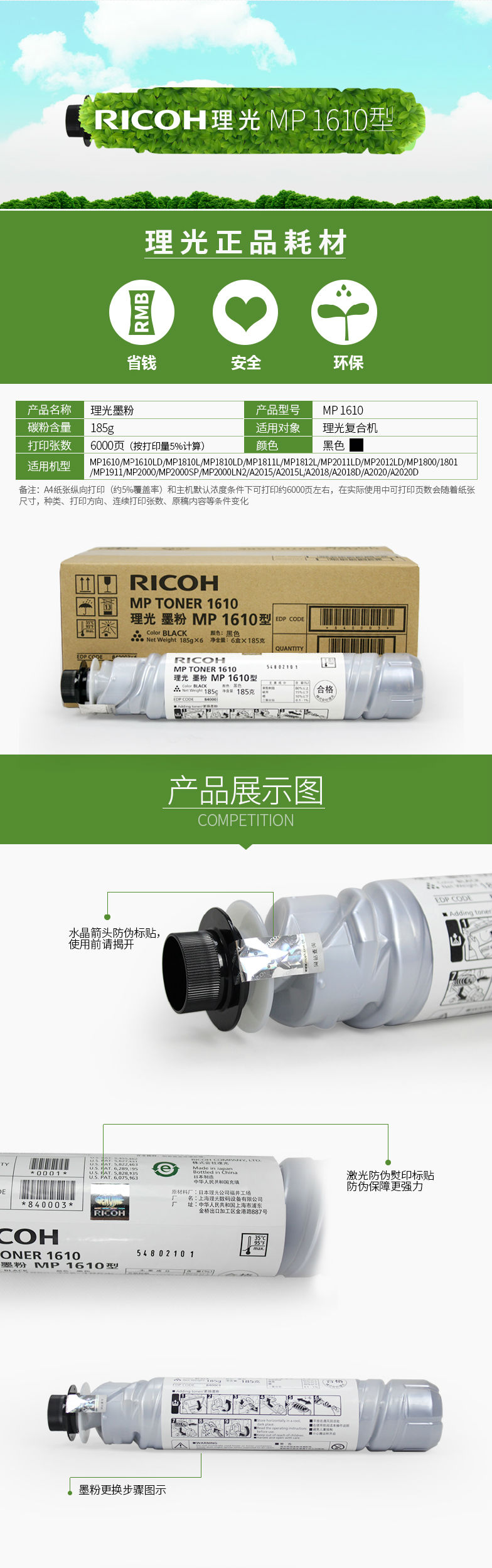 理光墨粉 MP1610 黑色 適用1610 1810 1811 1812 1800 2000 單位:支