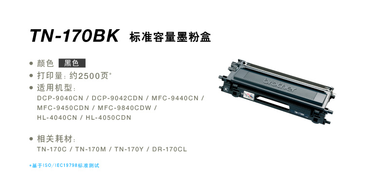 兄弟墨粉 TN-170BK 黑色粉盒 適用:HL-4040CN/4050CDN DCP-9040CN MFC-9440CN/9840CDW 單位:支