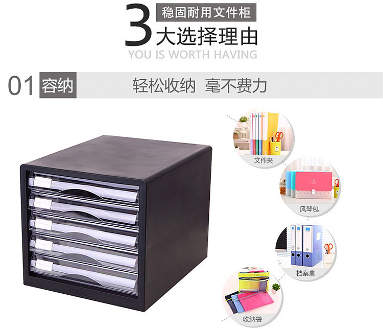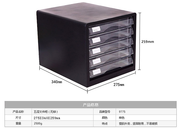 得力文件柜 9775 桌面資料整理文件柜5層無鎖 顏色隨機 單位:個