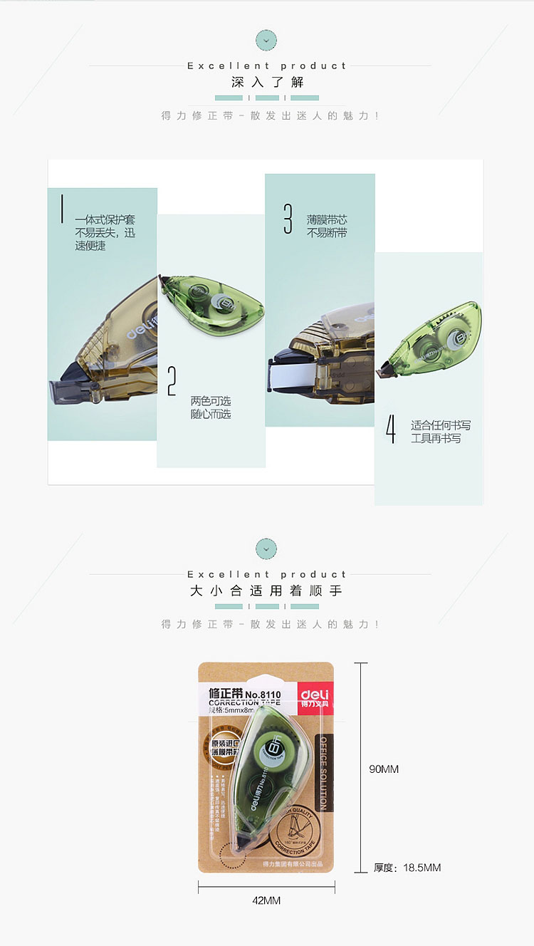 得力修正帶 8110 一體護套修正帶5mm*8m 顏色隨機 單位:個