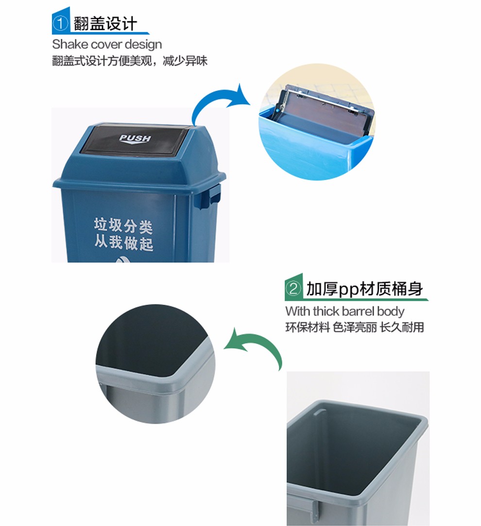 科靈 20L搖蓋 藍色 可回收垃圾分類垃圾桶帶蓋 飯店餐飲可回收廚余環(huán)衛(wèi)有害戶外四分類 單個裝