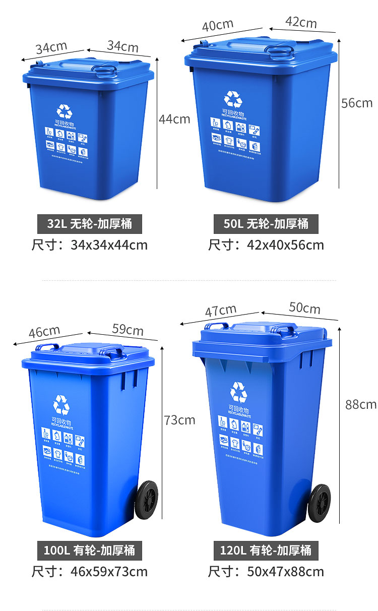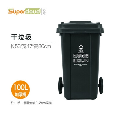 舒蔻 100L帶輪 黑色 干垃圾桶 物業(yè)環(huán)衛(wèi)垃圾分類商用帶蓋分類垃圾桶果皮箱 單個(gè)裝