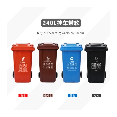 樸廚(PUCHU)240L帶輪 咖啡色 濕垃圾分類垃圾桶大號帶蓋 飯店餐飲可回收廚余環(huán)衛(wèi)有害戶外四色 單個裝