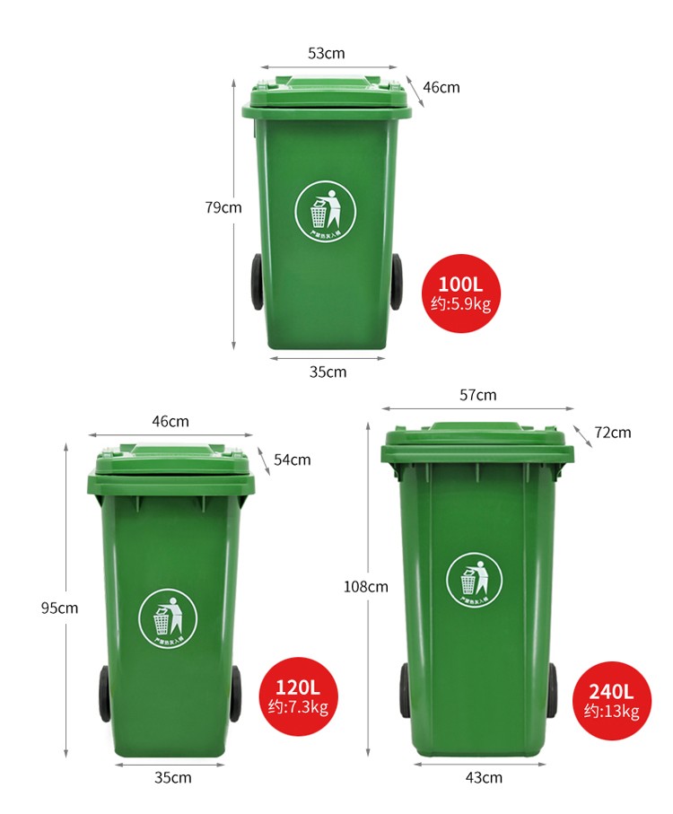 蘭詩 240L帶輪 紅色 有害垃圾桶 物業(yè)環(huán)衛(wèi)垃圾分類商用帶蓋分類垃圾桶果皮箱 單個裝