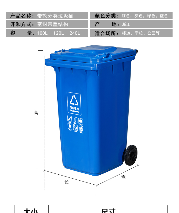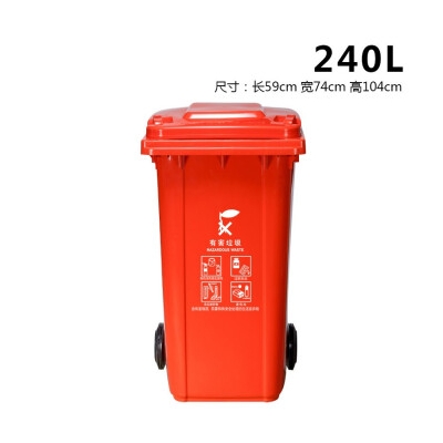 ABEPC 240L可掛車帶輪 紅色 有害垃圾桶 物業(yè)環(huán)衛(wèi)垃圾分類商用帶蓋分類垃圾桶果皮箱 單個裝