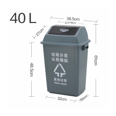 科靈 40L搖蓋 灰色 其他垃圾分類垃圾桶帶蓋 飯店餐飲可回收廚余環(huán)衛(wèi)有害戶外四分類 單個(gè)裝